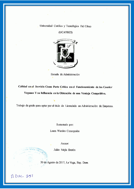 Biblioteca UCATECI - Sede Central - La Vega En Estantería | Tesis y Trabajos de Grado | RD ADM 2017-3 (Browse shelf(Opens below)) | Ej.1 | Préstamo Interno | ADM-251 |