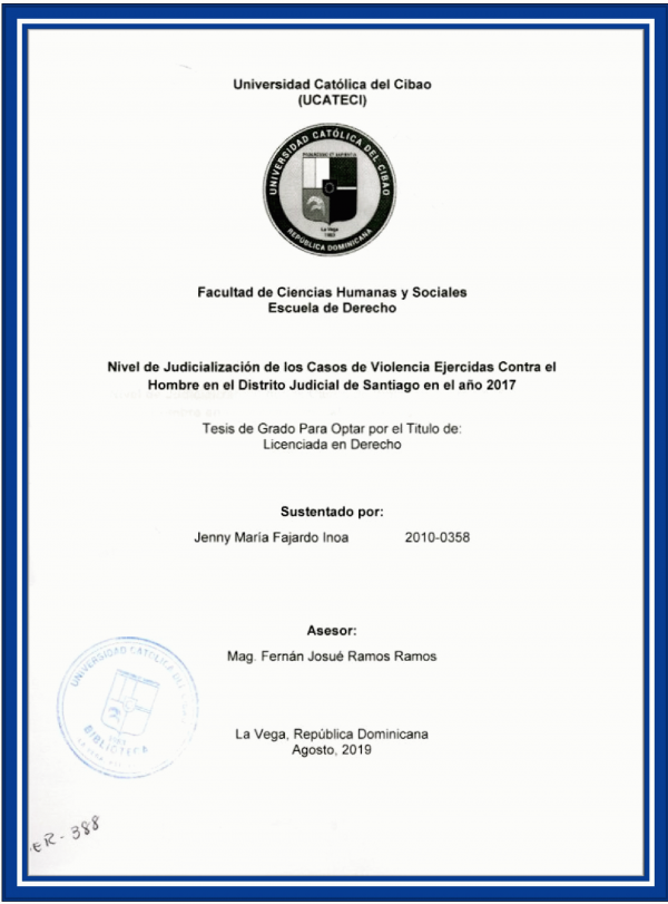 Nivel de judicialización de los casos de violencia ejercidas contra el hombre en el Distrito Judicial de Santiago en el año 2017 / Jenny María Fajardo Inoa; asesor Fernan Josué Ramos Ramos