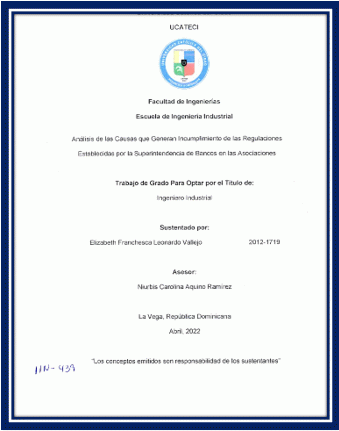 Análisis de las causas que generan incumplimiento de las regulaciones establecidas por la Superintendencia de Bancos en las Asociaciones / Elizabeth Franchesca Leonardo Vallejo; asesor Niurbis Carolina Aquino Ramírez