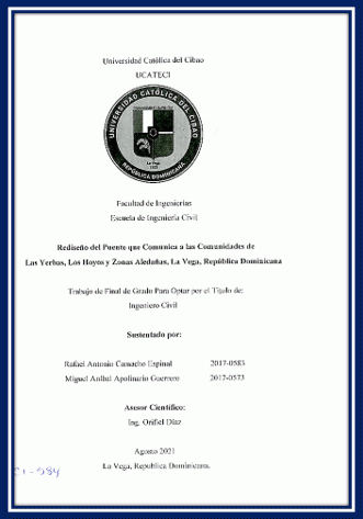 Rediseño del puente que comunica a las comunidades de Las Yerbas, Los Hoyos y zonas aledañas, La Vega, República Dominicana / Rafael Antonio Camacho Espinal, Miguel Aníbal Apolinario Guerrero; asesor Orifiel Díaz