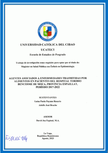 Agentes asociados a enfermedades transmitidas por alimentos en pacientes del Hospital Toribio Bencosme de Moca, Provincia Espaillat, período 2017-2022 / Luisa Paola Payano Rosario, Adolfo José Brache; asesor David Joa Espinal
