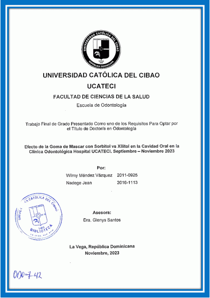 Tesis (Doctor en Odontología). -- UCATECI. Facultad de Ciencias de la Salud. Escuela de Odontología, 2023