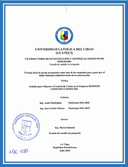 Estudio para mejorar el control de costos en la empresa RODDOM CONSTRUCCIONES SRL / Andri Rodríguez, Jean Carlos Vicioso; asesor Mario Dalmasi