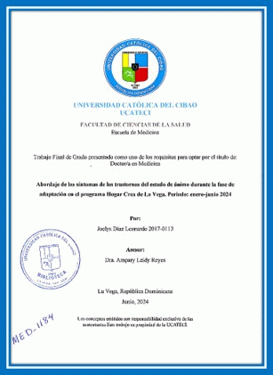 Abordaje de los síntomas de los trastornos del estado de ánimo durante la fase de adaptación en el programa Hogar Crea de La Vega. Periodo: enero-junio 2024 / Joelys Díaz Leonardo; asesor Ampary Leidy Reyes