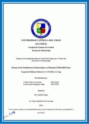 Manejo de los estudiantes de odontología en el Hospital CENSAIDE sobre urgencias médicas clínica I a V, P2 2025, La Vega / Lilibeth Pérez Almánzar, Leiby Diana Ortega De Jesús; asesor Sandia López