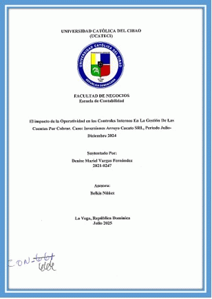 El impacto de la operatividad en los controles internos en la gestión de las cuentas por cobrar. Caso: Inversiones Arroyo Cacato SRL, periodo julio-diciembre 2024 / Denise Mariel Vargas Fernández; asesor Belkis Núñez