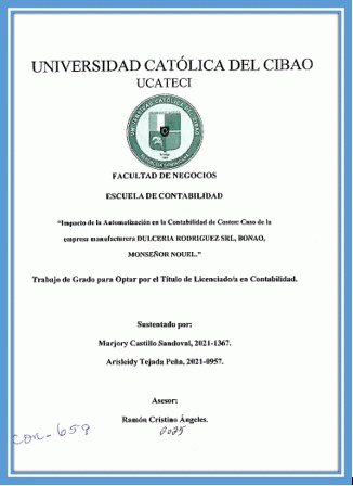 Impacto de la automatización en la contabilidad de costos: Caso de la empresa manufacturera Dulcería Rodríguez SRL, Bonao, Monseñor Nouel / Marjory Castillo Sandoval, Arisleidy Tejada Peña; asesor Ramón Cristino Ángeles