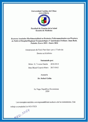 Factores asociados morbimortalidad en pacientes politraumatizados con fracturas de pelvis el Hospital Regional Traumatologico y Quirurgico Profesor. Juan Bosh. Periodo: enero 2023 - enero 2024 / Helen G. Taveras García, Juan Misael Cepeda Marte; asesor Rafael Galán