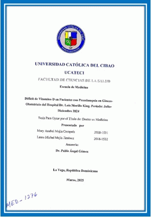 Déficit de vitamina D en pacientes con preeclampsia en gineco-obstetricia del Hospital Regional Universitario Dr. Luis Manuel Morillo King, Periodo: julio-diciembre 2024 / Mary Anabel Mejía Comprés, Laura Michel Mejía; asesor Pablo Angel Gómez