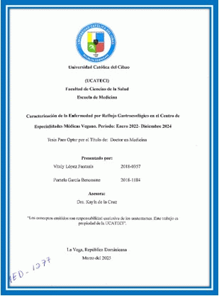 Caracterización de la enfermedad por reflujo gastroesofágico en el Centro de especialidades Médicas Vegano. Periodo: enero 2022-diciembre 2024 / Vitaly López Fantasía, Pamela García Bencosme; asesor Kayla De La Cruz