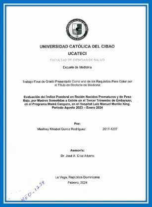 Evaluación del índice ponderal en recién nacidos prematuros y de peso bajo, por madres sometidas a estrés en el tercer trimestre de embarazo, en el Programa Mamá Canguro, en el Hospital Luis Manuel Morillo King. Periodo agosto 2023 - enero 2024 / Mashley Khiabet Quiroz Rodríguez; asesor José A. Cruz Alberto