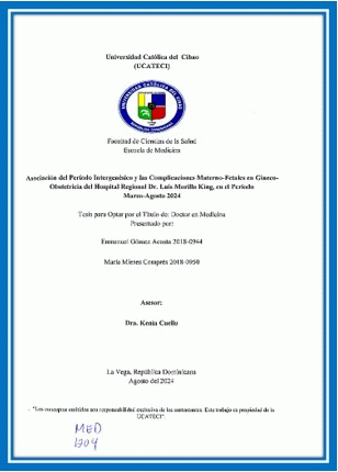 Asociación del periodo intergenesico y las complicaciones materno-fetales en gineco-obstetricia del Hospital Regional Dr. Luis Morillo King, en el periodo marzo-agosto 2024 / Enmanuel Gómez Acosta, María Mieses Comprés; asesor Kenia Cuello