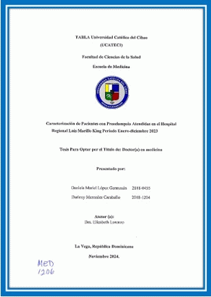 Caracterización de pacientes con preeclampsia atendidas en el Hospital Regional Luis Morillo King periodo enero-diciembre 2023 / Daniela Mariel López Germosén, Darleny Mercedes Caraballo; asesor Elizabeth Lorenzo