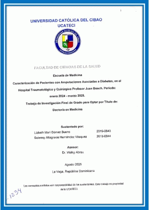 Caracterización de pacientes con amputaciones asociadas a diabetes, en el Hospital Traumatológico Profesor Juan Bosch. Periodo: enero 2024 - marzo 2025 / Lizbeth Mari Gómez Bueno, Selenny Altagracia Hernández Vásquez; asesor Walky Abreu