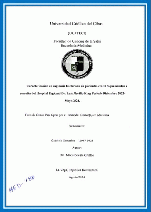 Caracterización de vaginosis bacteriana en pacientes con ITS que acuden a consulta del Hospital Regional Dr. Luis Morillo King periodo diciembre 2023 - mayo 2024 / Gabriela Gonzalez; asesor María Celeste Grullón