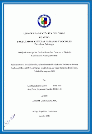 Relación entre la ansiedad social y el uso problemático de redes sociales en jóvenes adultos del Hospital Dr. Luis Manuel Morillo King, La Vega, República Dominicana, periodo mayo-agosto 2025 / Luz María Suárez García, Anyi Paola Hernández Capellán; asesor Aníbal M. Ureña Rosario