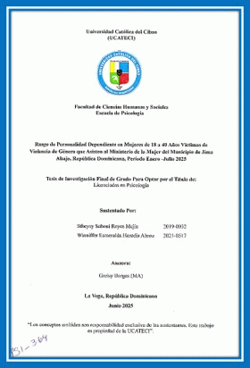 Rasgo de personalidad dependiente en mujeres de 18 a 40 años victimas de violencia de genero que asisten al Ministerio de la Mujer del municipio de Jima Abajo, Republica Dominicana, periodo enero-julio 2025 / Shetysy Sahoni Reyes Mejía, Winnifer Esmeralda Heredia Abreu; asesor Greisy Borges