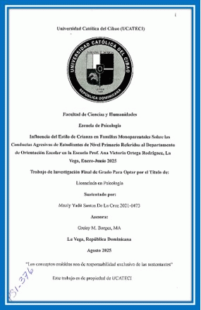 Influencia del estilo de crianza en familias monoparentales sobre conductas agresivas de estudiantes de nivel primario referidos al departamento de orientación escolar en la Escuela Prof. Ana Victoria Ortega Rodríguez, La Vega, enero-junio 2025 / Maoly Yudit Santos De La Cruz; asesor Greisy M. Borges