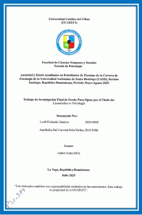 Ansiedad y estrés académico en estudiantes de término de la carrera de psicología de la Universidad Autónoma de Santo Domingo (UASD), Recinto Santiago, República Dominicana. período mayo–agosto 2025 / Lexli Pichardo Jiménez, Annibelka del Carmen Peña Valdez; asesor Aníbal Ureña