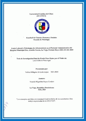Estrés laboral y estrategias de afrontamiento en el personal administrativo del Hospital Municipal Dra. Armida García, La Vega, periodo mayo-julio el año 2025 / Yelitza Milagros De León López; asesor Yesenia Miguelina Reyes Cordero
