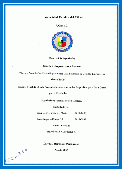 Sistema web de gestión de reparaciones para empresas de equipos electrónicos Genao Tech / Joan Gabriel Guerrero Marte, Luis Gregorio Genao Gil; asesor Olive S. Concepción C.
